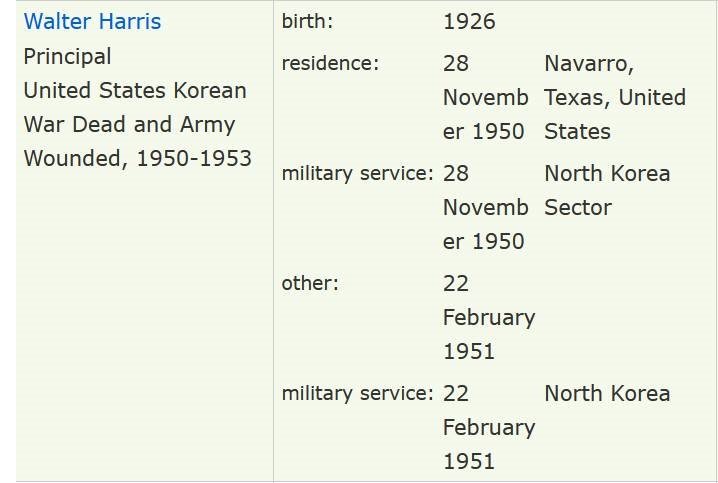 Korean Conflict Roll of Honor Navarro County, Texas |