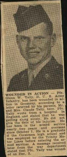 WOUNDED IN ACTION - Pfc Glen W. Tally, 21, U. S. Army
