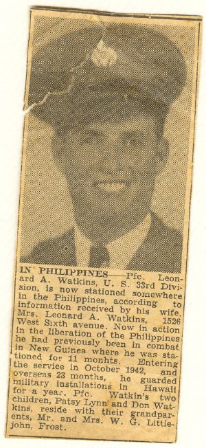 IN PHILIPPINES - Pfc. Leonard A. Watkins, U. S. 33rd Division, is