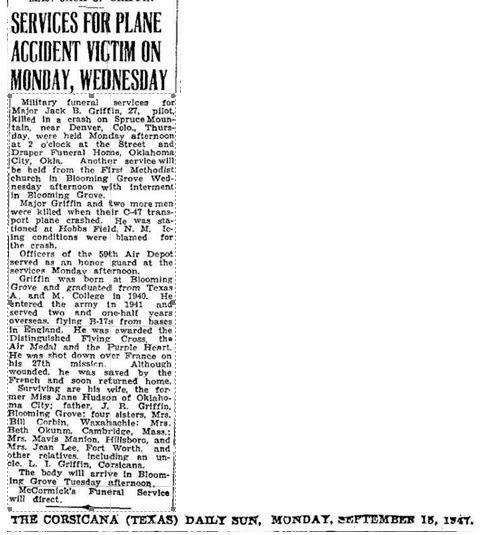 Friday morning. Major Griffin is survived by his wife of Hobbs,