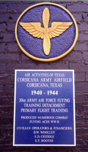 Texas Corsicana Army Airfield Corsicana, Texas 1940-1944. 301st Army Air Force Flying Training Detachment Primary Flight Training produced numerous