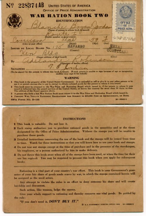 Issued to Blanche Bryan Jordan (bottom is reverse side of book issued to Thomas Paul Jordan).